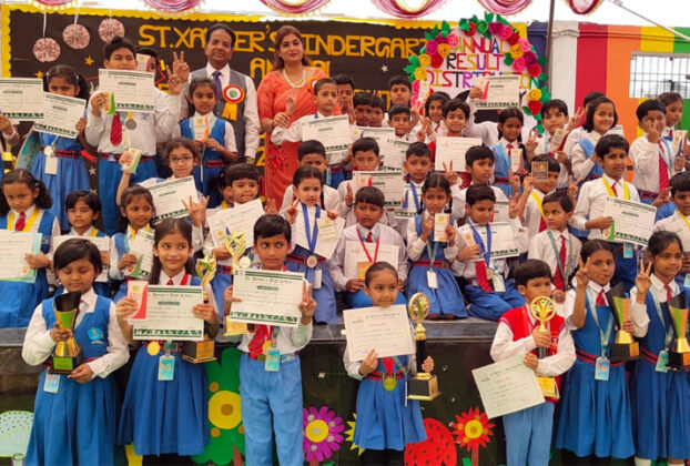 सेंट जेवियर्स किंडरगार्टन में नर्सरी से कक्षा तृतीय तक के विद्यार्थियों को वितरित किया वार्षिक रिजल्ट, कई बच्चों को दिया गया मेडल